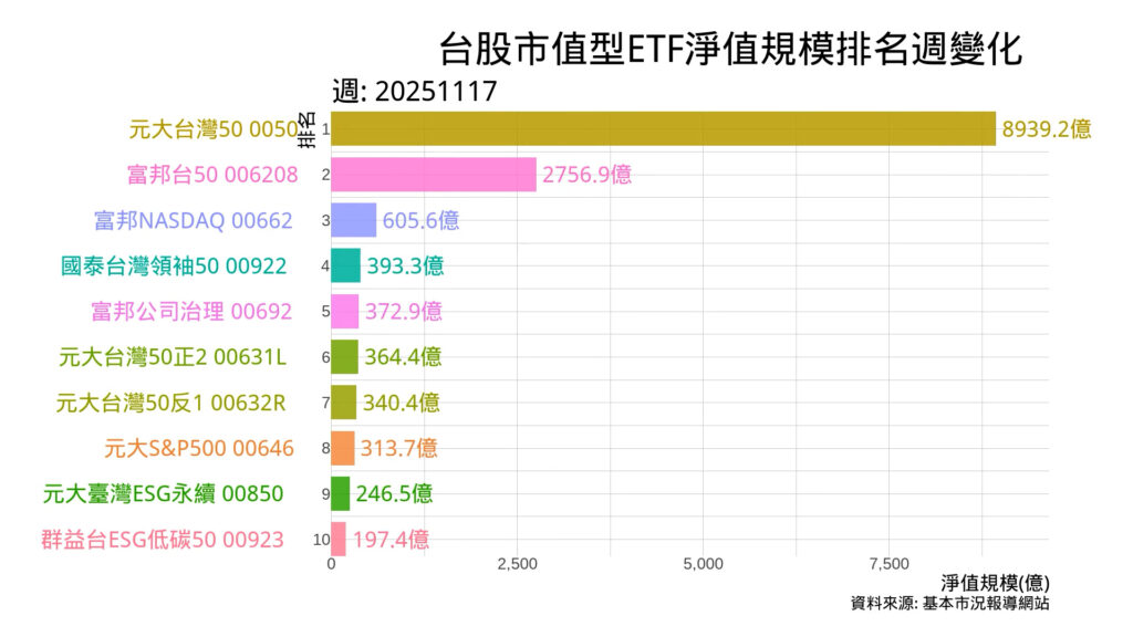 📌 0050(元大台灣50)規模暴增:3,018 億 → 8,939 億