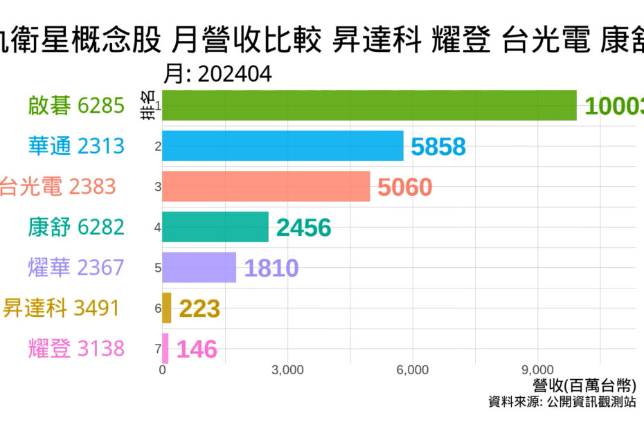 低軌衛星概念股月營收比較 昇達科 耀登 台光電 康舒 燿華 華通 啟碁