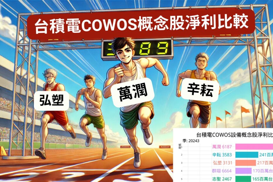 在動畫中,我們比較了8間台積電先進封裝設備概念股的每季淨利,資料期間是從2013年第一季到2024年第三季,在這十年中,我們可以看到COWOS概念股每季淨利的變化,在最新的2024年第三季,COWOS設備概念股獲利第一名是萬潤的4.5億台幣,第二名是辛耘的2.4億台幣,第三名是弘塑的2.1億台幣。接下來我們談到了季營收創歷史新高的半導體設備廠萬潤的公司簡介與近期營運概況,最後比較了台積電COWOS設備概念股的ROE與毛利率之獲利能力排名,ROE排名第一是萬潤的9.3%。